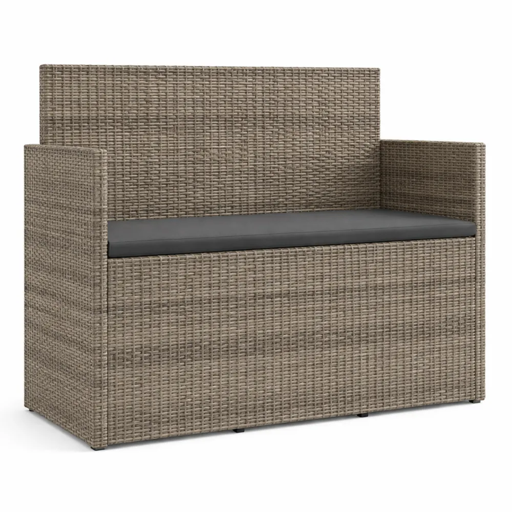 Das Gartensofa verfügt über ein Staufach unter der Sitzfläche, ausgestattet mit einem wasserfesten Beutel zur Aufbewahrung von diversen Gegenständen. Der Innenbeutel kann sicher an den Gartenmöbeln befestigt werden.
