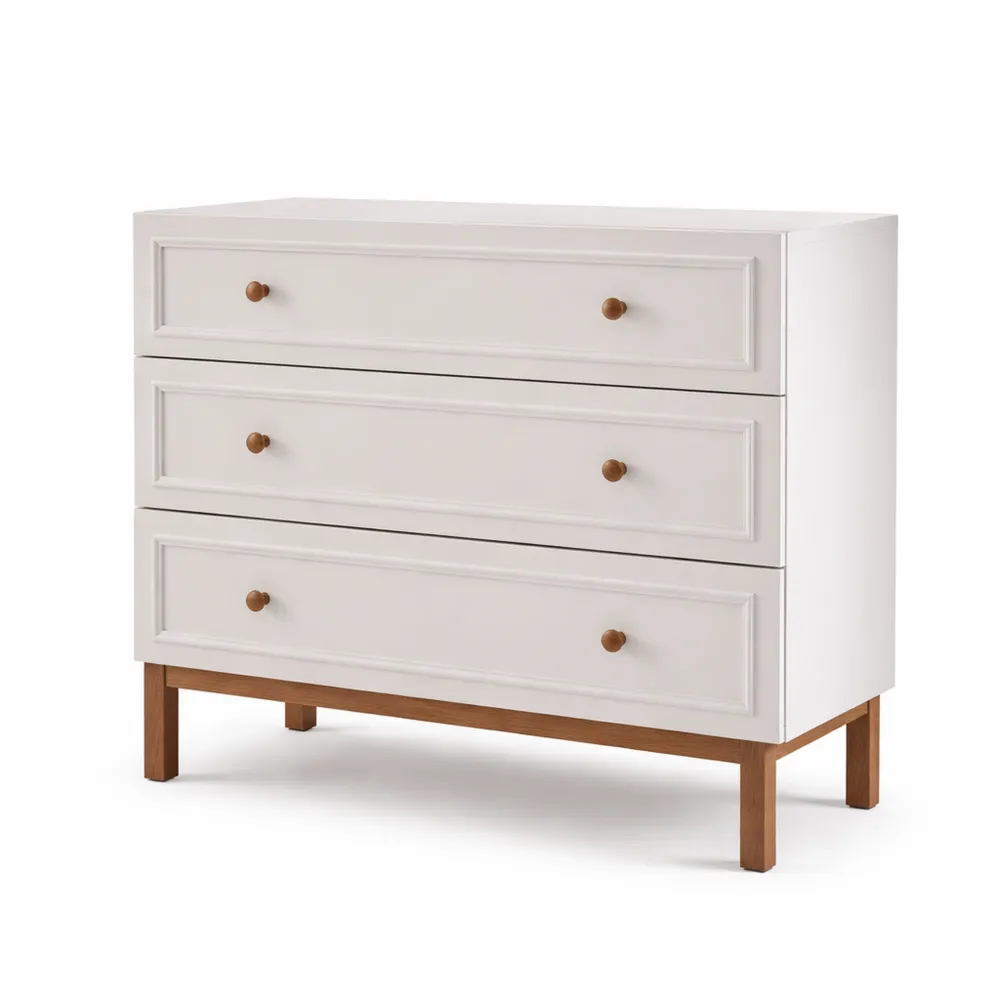 Drei Schubladen bieten funktionalen Stauraum. Geeignet für verschiedene Räume wie Wohnzimmer, Schlafzimmer oder Büro. Das Design kombiniert Secret Grey mit Schlammeiche Dekor für eine vielseitige Nutzung. Die Möbel haben moderne, geradlinige Beine mit Schlammeiche-Dekor und dezente Rahmenornamente an den Fronten.