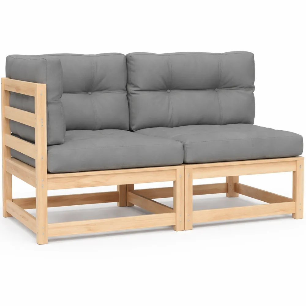 Dieses 2-Sitzer-Sofa aus Holz mit Kissen ist eine Bereicherung für deinen Garten, deine Terrasse oder deinen Innenhof zum Plaudern oder um das Wetter zu genießen. Massive Kiefernholz verleiht dem Sofa eine natürliche Optik mit einer geraden Maserung. Aus diesem Holz gefertigt, bleibt das Outdoor-Sofa stabil. Die Rückenlehne und die gepolsterten Kissen sorgen für ein angenehmes Sitzerlebnis. Das Latten-Design hilft, die Ansammlung von Wasser zu verhindern und hält die Sitzfläche trocken. Dieses modulare Gartensofa ist flexibel und kann leicht umgestellt werden, um sich an die Umgebung anzupassen. Es lässt sich mit anderen Sofaelementen kombinieren, um ein persönliches Outdoor-Lounge-Set zu erstellen.