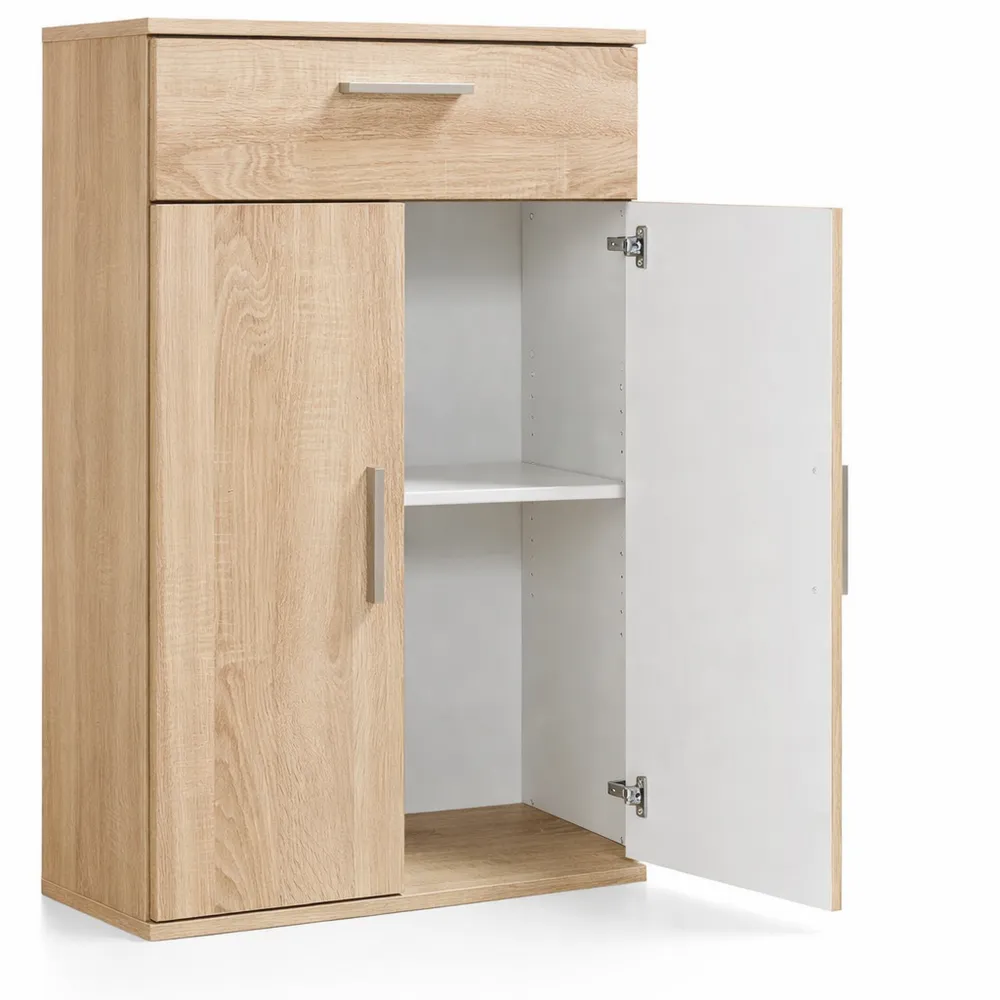 Der Schubladenschrank bietet durch mehrere Fächer und Schubelemente viel Stauraum und ist in zwei Größen erhältlich. Zusätzliche Einlegeböden ermöglichen eine individuelle Anpassung. Hergestellt aus Spanplatte mit Kunstharzbeschichtung und Kunststoffgriffen, passt dieser Schrank für verschiedene Verwendungszwecke in unterschiedliche Räume. Die Möbel sind dekorativ aufeinander abgestimmt und können zu einer funktionalen Schrankwand kombiniert werden. Die Herstellung erfolgt in NRW mit Fokus auf ressourcenschonender Produktion.